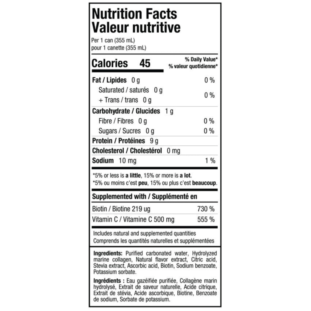In each 355ml can, Jouvence offers you a generous dose of 10g of marine collagen, enriched with vitamin C and biotin, all in osmosis water. This exceptional combination of ingredients provides you with everything you need to care for your hair, nails, radiant skin, as well as support for your joints and tendons!