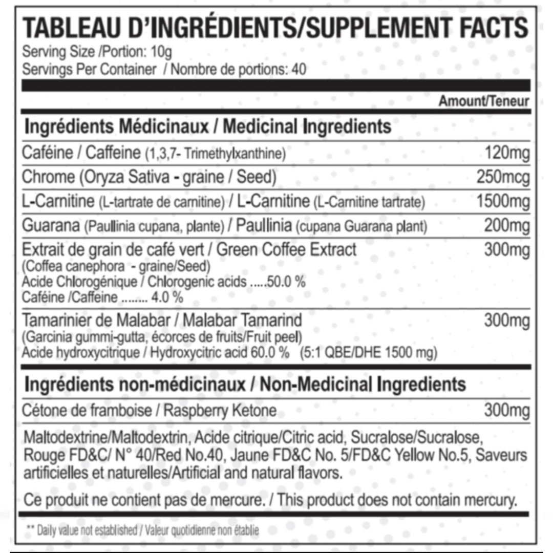 This product contains different sources of stimulants: Guarana, Caffeine and green coffee extracts.