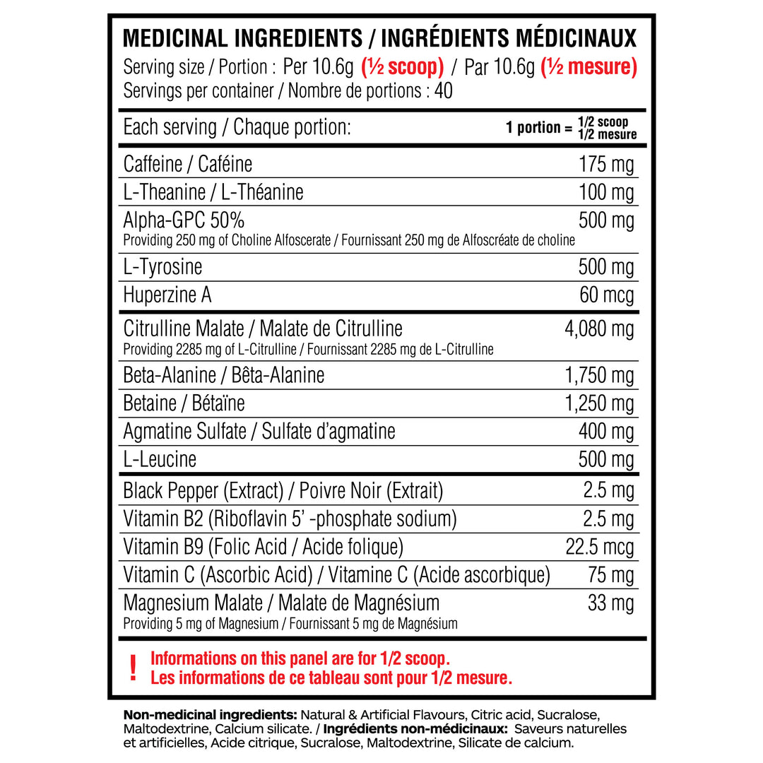 Dynamic caffeine, stimulating DMAE, cognitive-enhancing tyrosine, and energizing bitter orange come together to provide sharp mental focus and sustained energy. Meanwhile, muscle-pumping citrulline malate, essential L-leucine, performance-boosting beta-alanine, and hydrating glycerol work synergistically to deliver the most intense and complete muscle pump you've ever experienced.