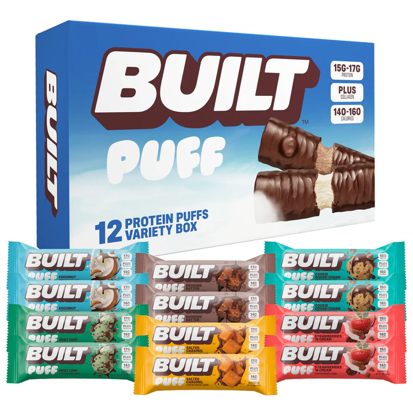 Why choose another protein bar when you could opt for something new with marshmallow Puffs from Built Bar? These are the first and only protein puffs on the market made with marshmallows and infused with protein. Each container has 140 calories, 6 grams of sugar, and only 2 grams of fat, creating a snack you can feel good about.