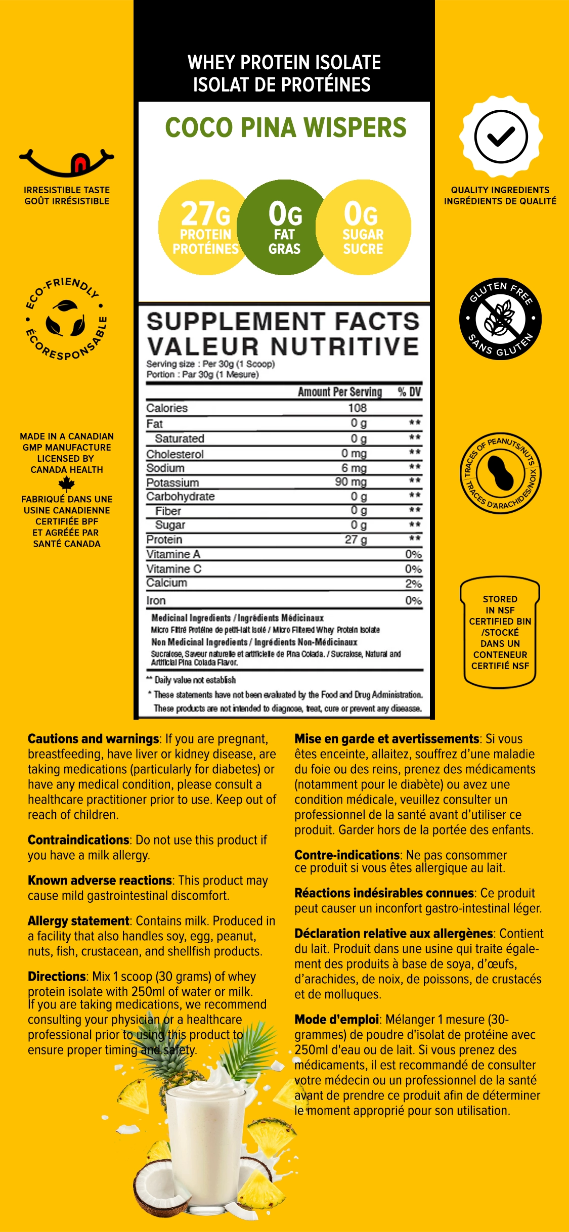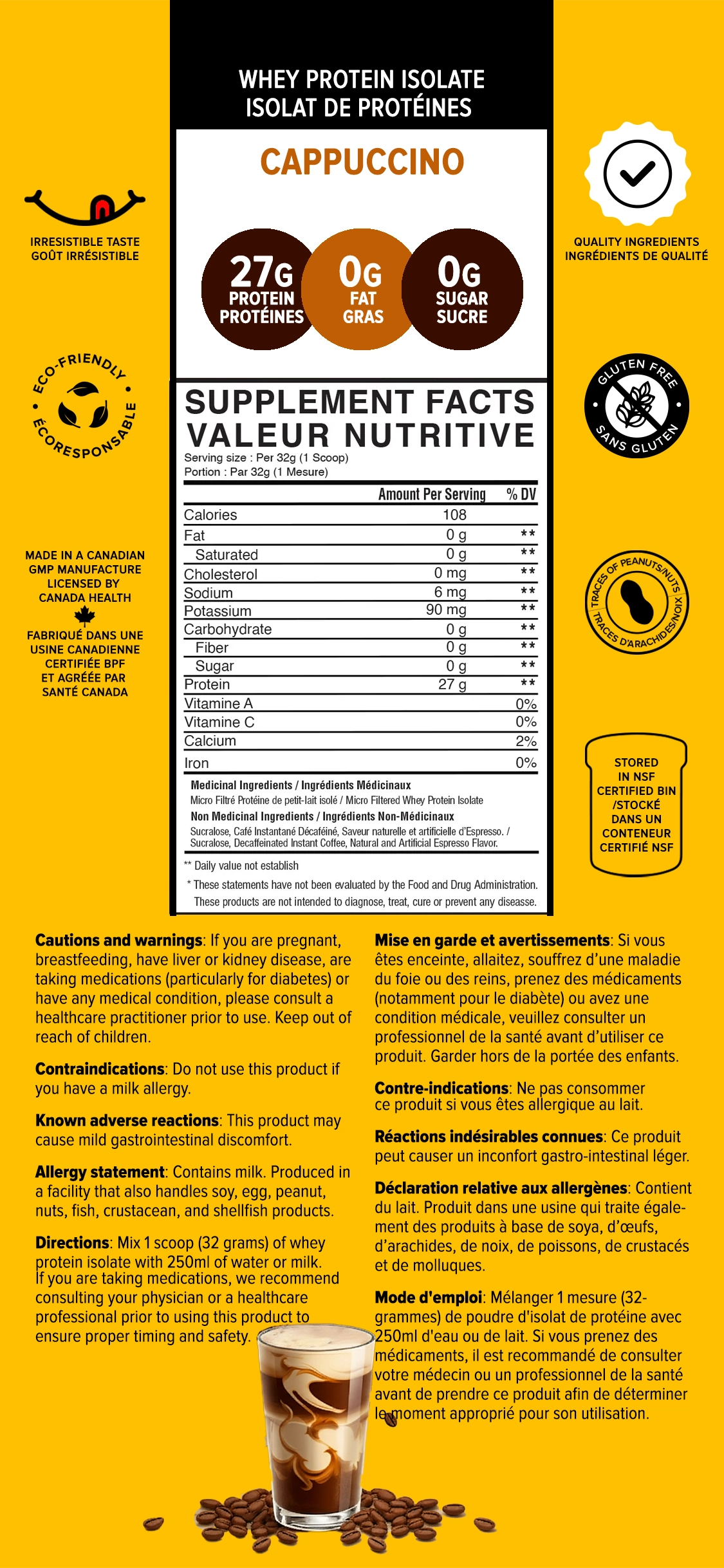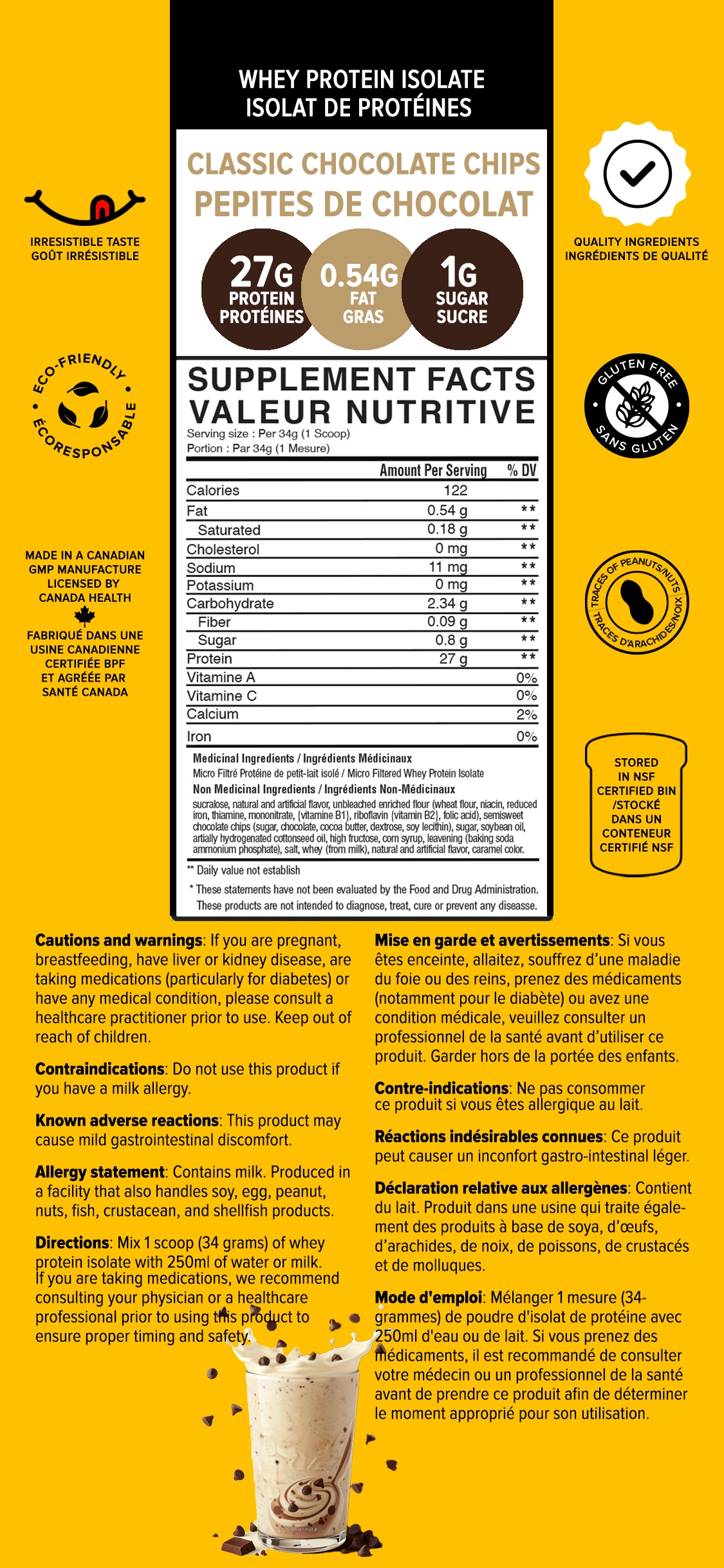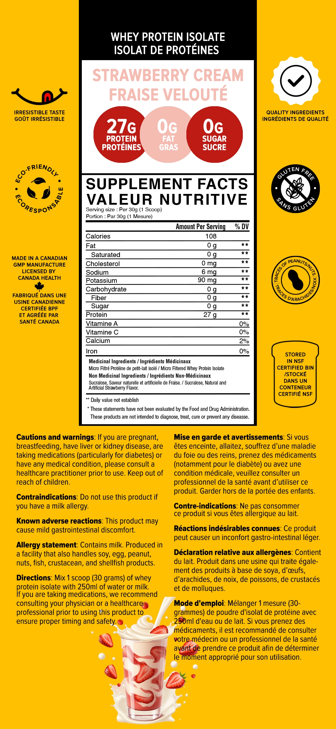 All of our bulk products are manufactured in a Canadian GMP-certified facility, licensed by Health Canada. Produced in accordance with the highest industry standards, our whey protein isolate offers a smooth, silky texture and exceptional taste. It is instantized for easy mixing—chunk-free—using either a spoon or a shaker. Each batch is freshly produced and stored in NSF-certified containers to ensure optimal quality and safety.