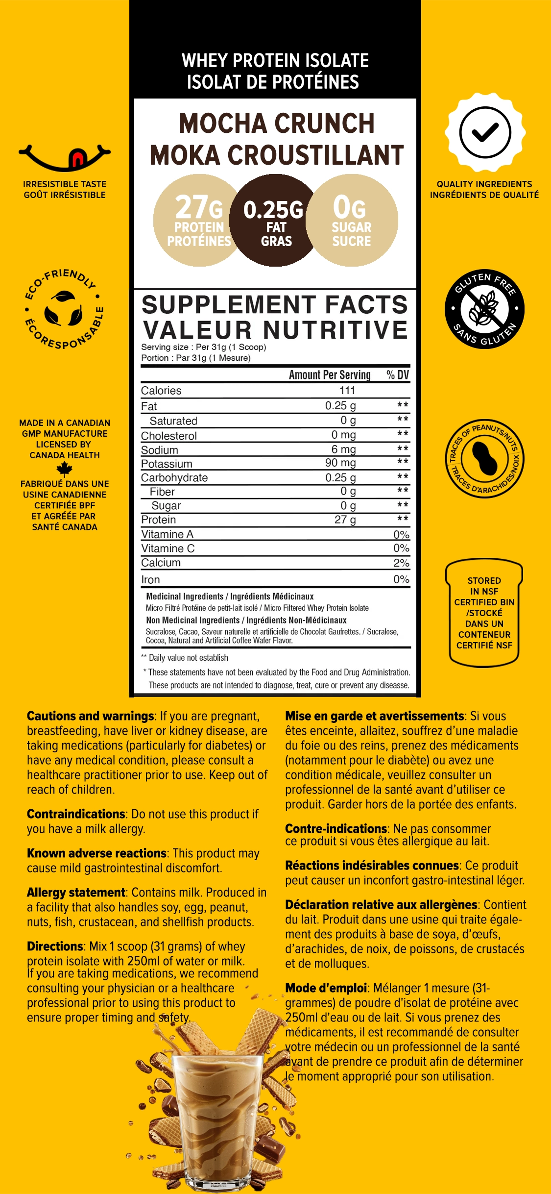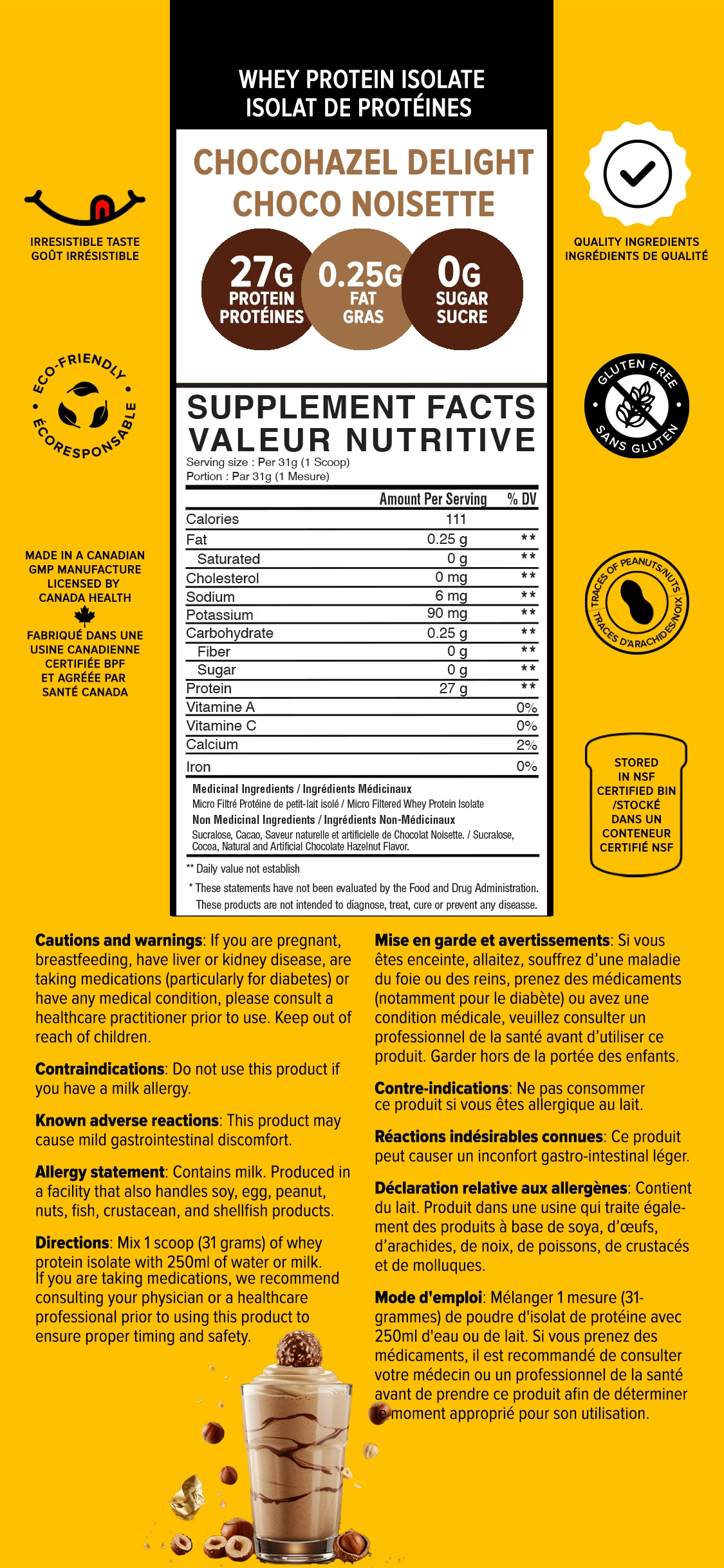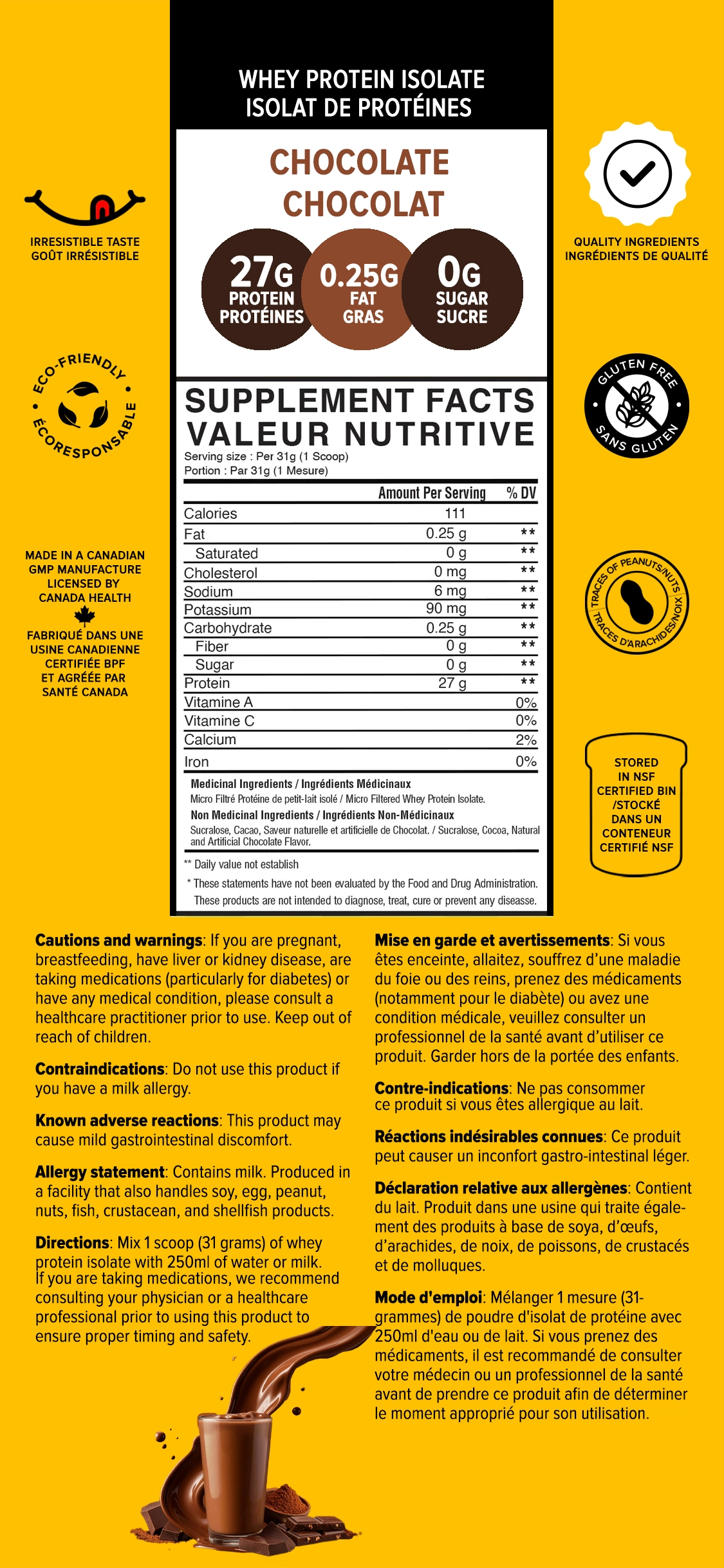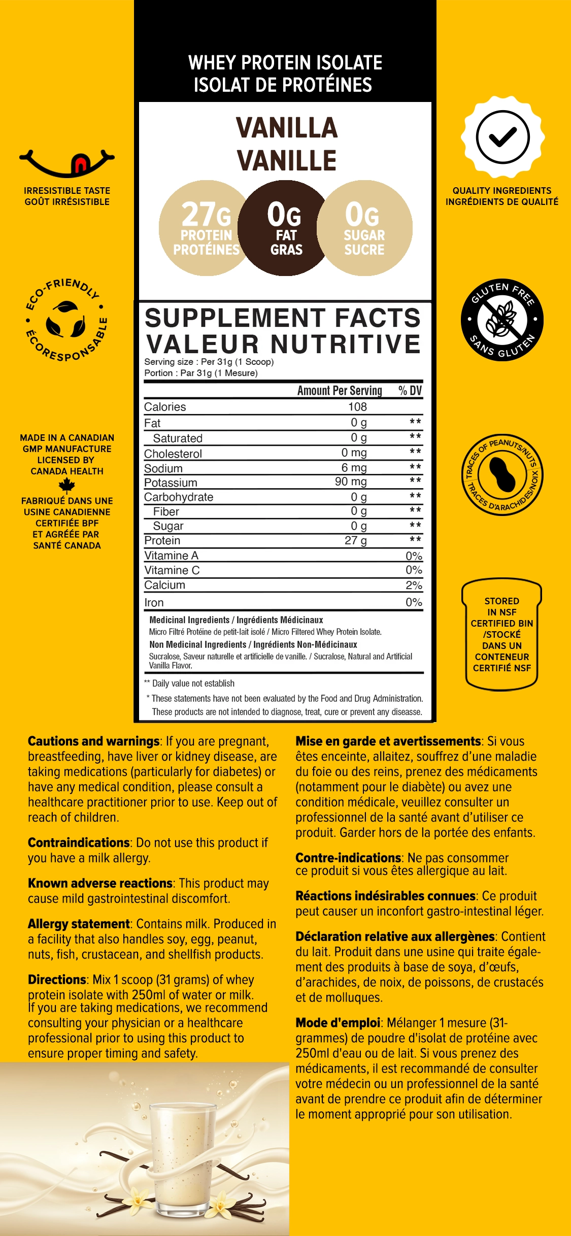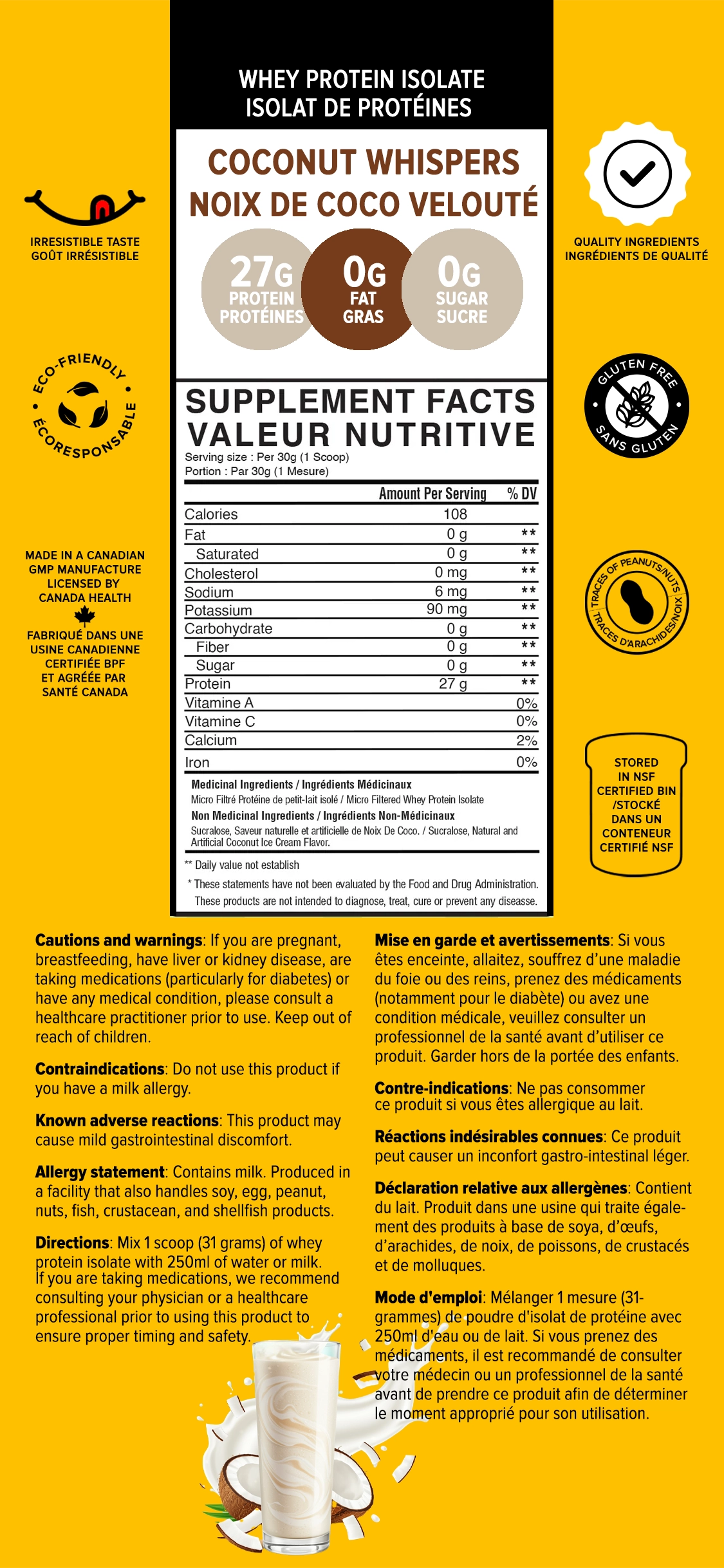 All of our bulk products are manufactured in a Canadian GMP-certified facility, licensed by Health Canada. Produced in accordance with the highest industry standards, our whey protein isolate offers a smooth, silky texture and exceptional taste. It is instantized for easy mixing—chunk-free—using either a spoon or a shaker. Each batch is freshly produced and stored in NSF-certified containers to ensure optimal quality and safety.