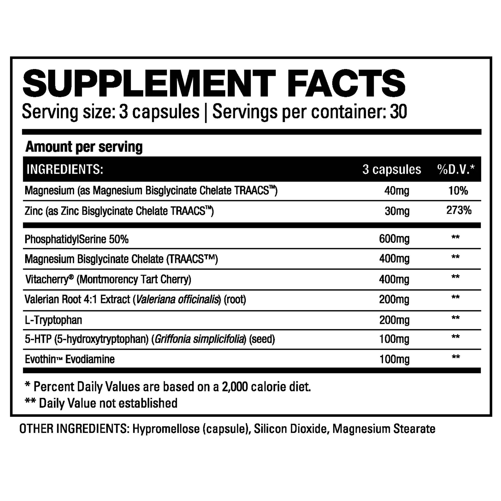 Take 3 capsules 30–45 minutes before bed with or without food. Use nightly to support consistent sleep patterns and optimized recovery.