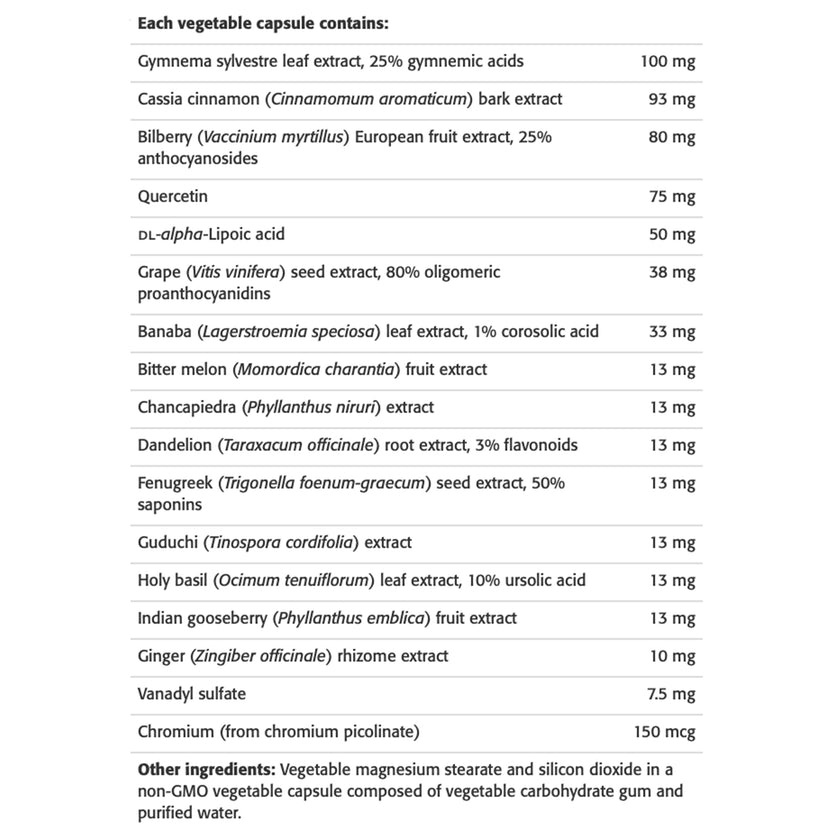 • Comprehensive formula that supports the maintenance of healthy blood sugar levels.